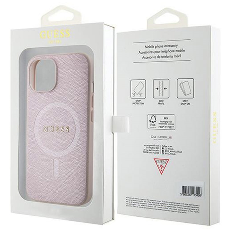 iPhone 15 Guess Saffiano Hybrid Cover - MagSafe Kompatibel - Pink