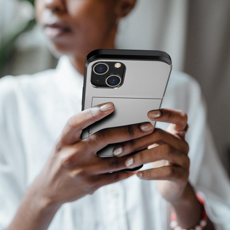 iPhone 15 Hybrid Cover med Glidekortholder - Sølv