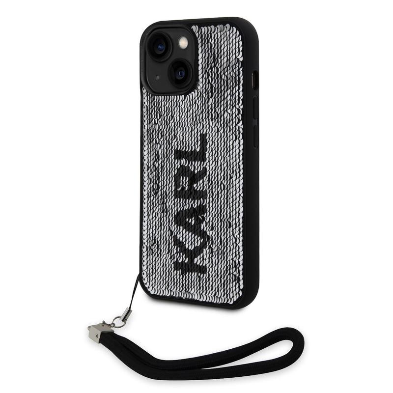 iPhone 15 Karl Lagerfeld Reversible Sequins Cover - Sort / Sølv