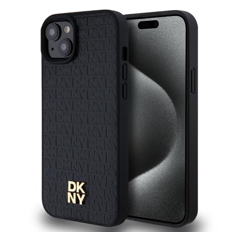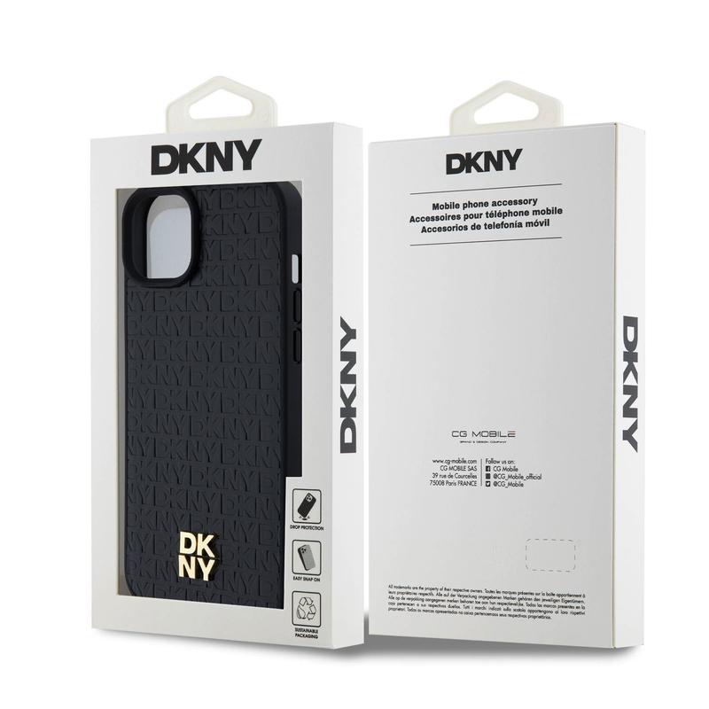 iPhone 15 Plus DKNY Repeat Pattern Stack Logo Cover - MagSafe-kompatibel - Sort