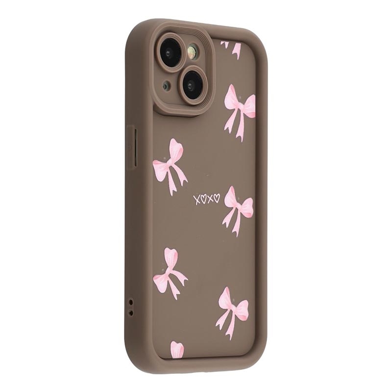 iPhone 15 Plus Stilfuldt stødsikkert TPU cover med forhøjede kanter - Brun / Sløjfe