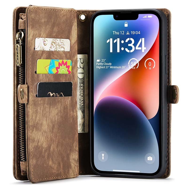 iPhone 15 Plus Caseme 2-i-1 Multifunktionel Pung Cover - Brun