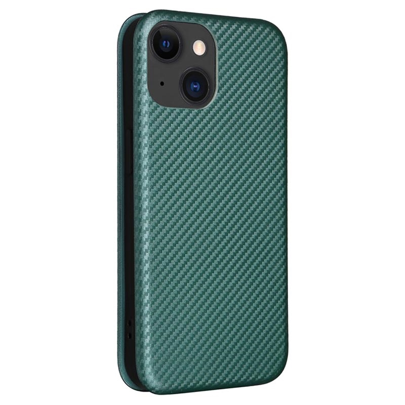iPhone 15 Plus Flip Cover - Karbonfiber - Grøn