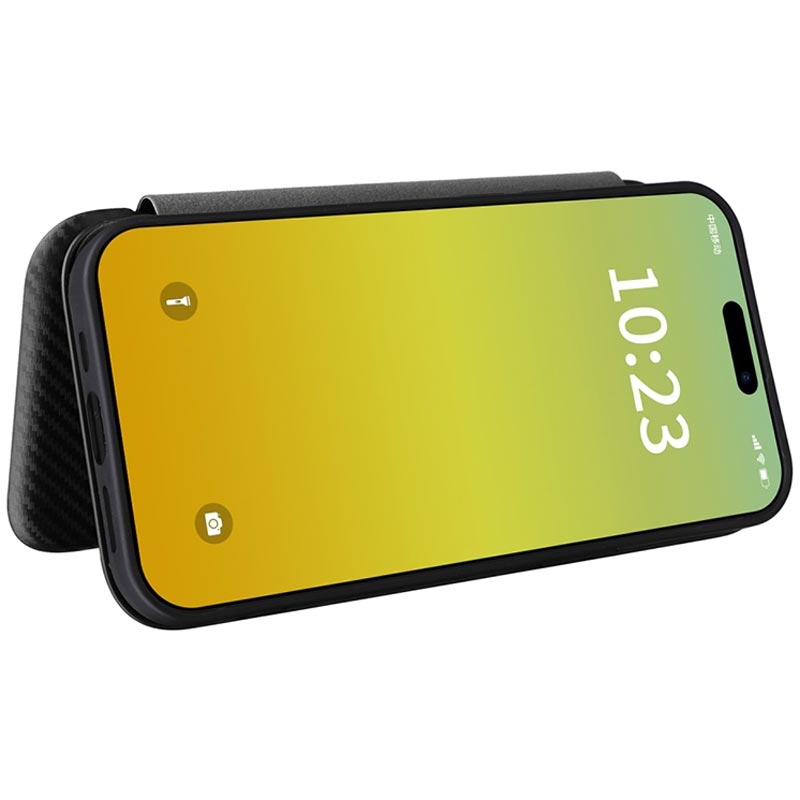 iPhone 15 Plus Flip Cover - Karbonfiber - Sort