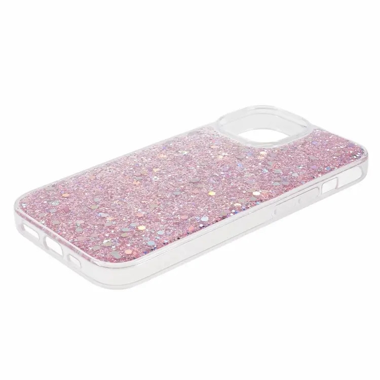 iPhone 15 Plus Glitter Flakes TPU Cover - Pink