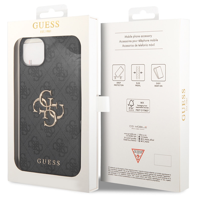 - Dette iPhone 15 Plus Guess 4G Big Metal Logo hybridcover er lavet af slidstærkt TPU og polyurethan