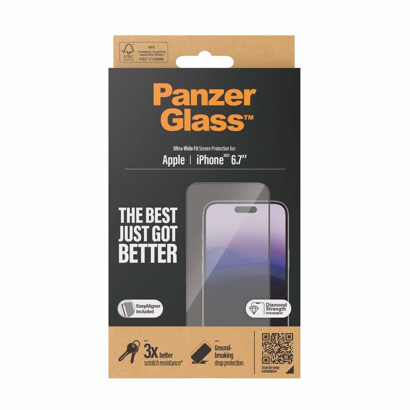 PanzerGlass Ultra-Wide Fit EasyAligner Hærdet Glas til iPhone 15 Plus