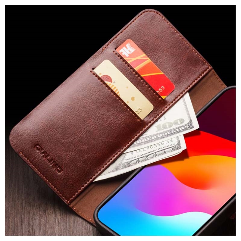 Beskyt din iPhone 15 Plus i en elegant og moderne Qialino classic pung læder taske. Opbevar dine kreditkort, kontanter sammen med din mobil, takket være de integrerede lommer.