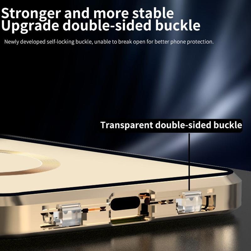 iPhone 15 Pro Max - cover i dobbeltsidet HD-hærdet glas, kompatibelt med MagSafe - guld