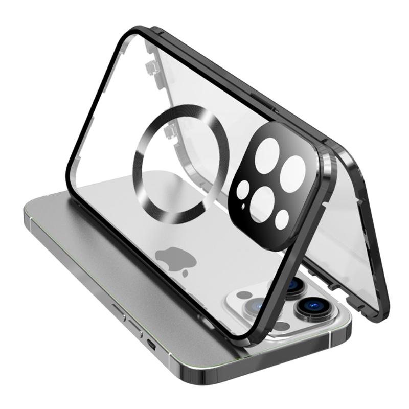 iPhone 15 Pro Max - cover i dobbeltsidet HD-hærdet glas, kompatibelt med MagSafe - sort