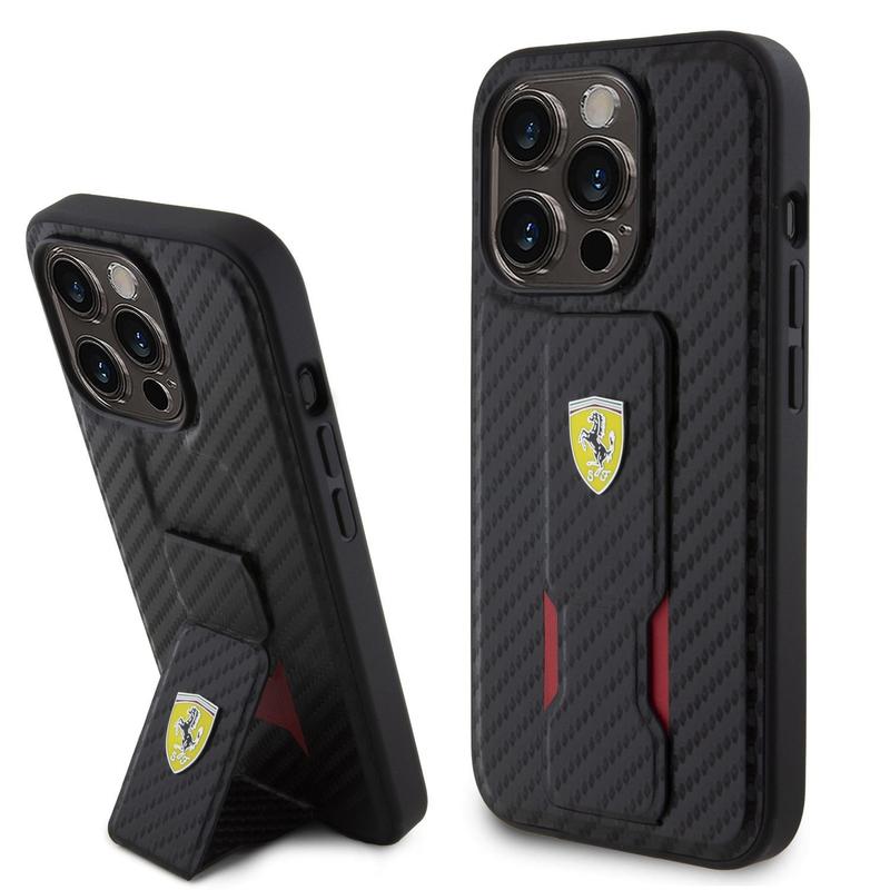 Ferrari Carbon Grip Stativ Cover til iPhone 15 Pro Max