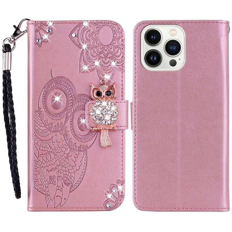 iPhone 15 Ugle Rhinsten Pung - Rødguld