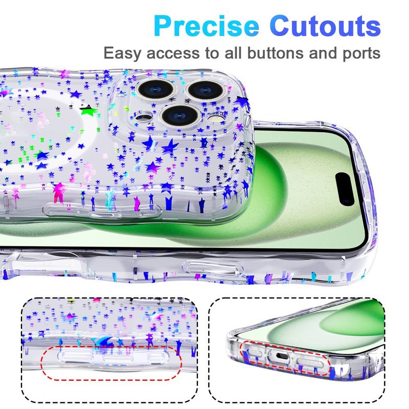 iPhone 16 Pro Max Wave-Edge Laser Glitter MagSafe Cover - stjerne