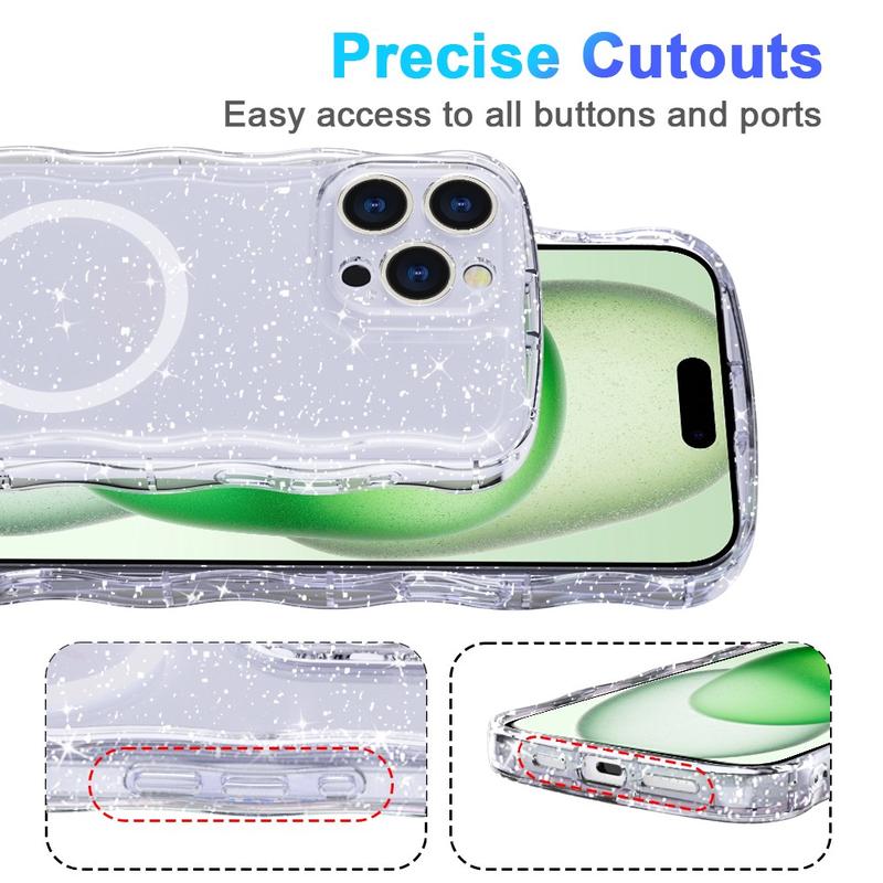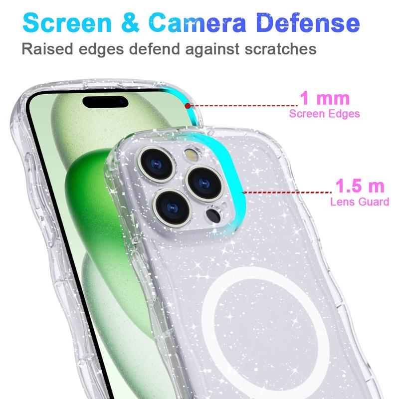 Wave-Edge Laser Glitter MagSafe TPU Cover til iPhone 15 Pro Max