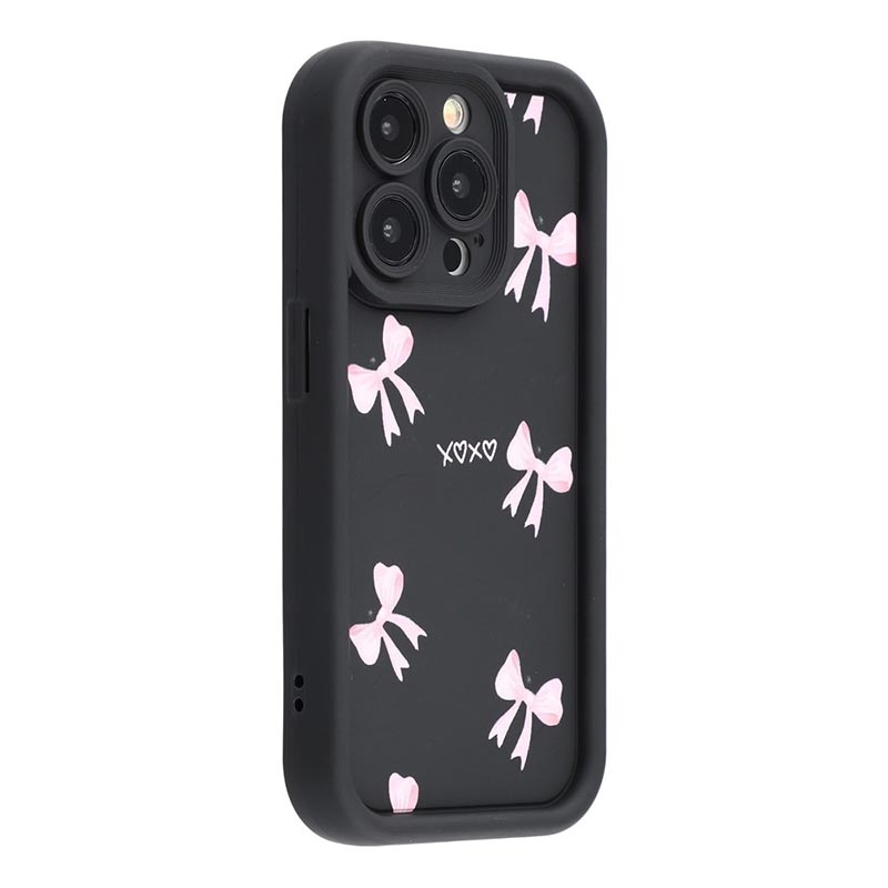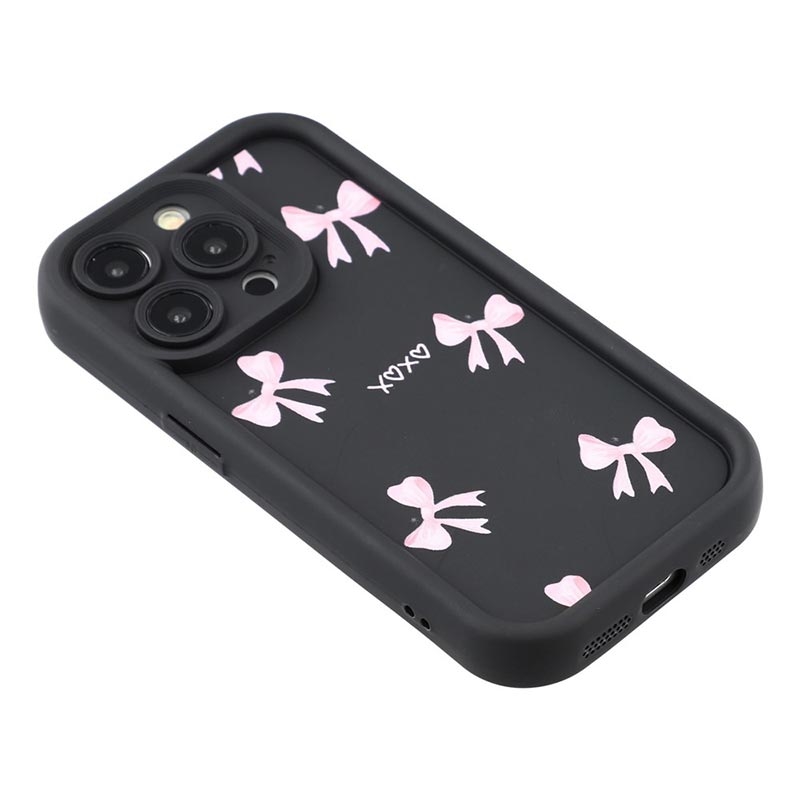 iPhone 15 Pro Max Stilfuldt stødsikkert TPU cover med forhøjede kanter - sort / stor sløjfe