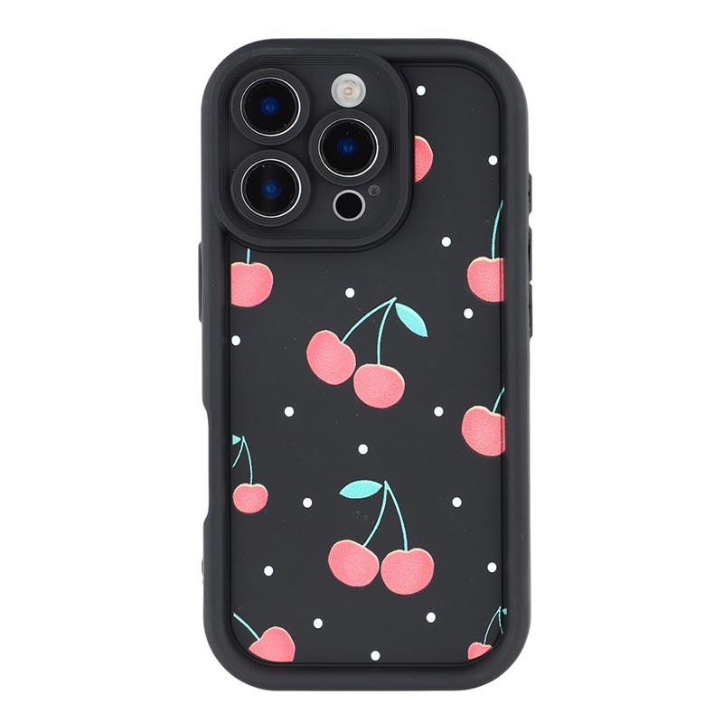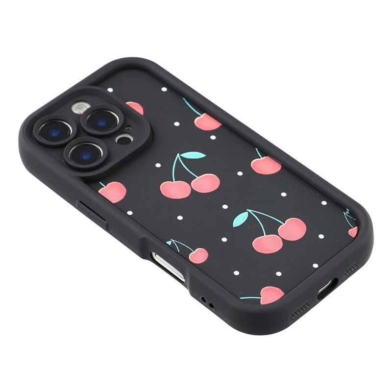 iPhone 15 Pro Stilfuldt stødsikkert TPU cover med forhøjede kanter - sort / Kirsebær