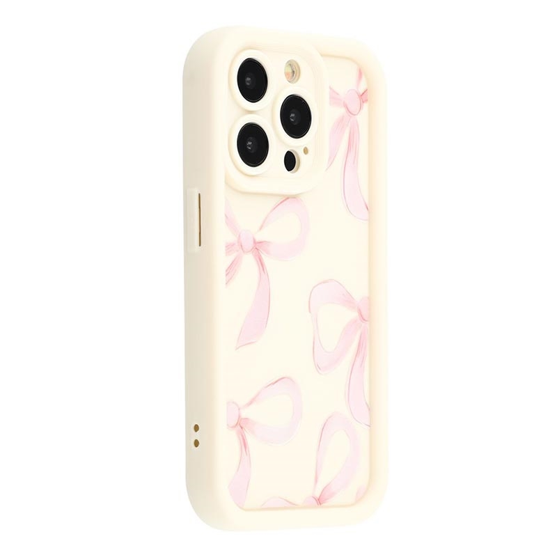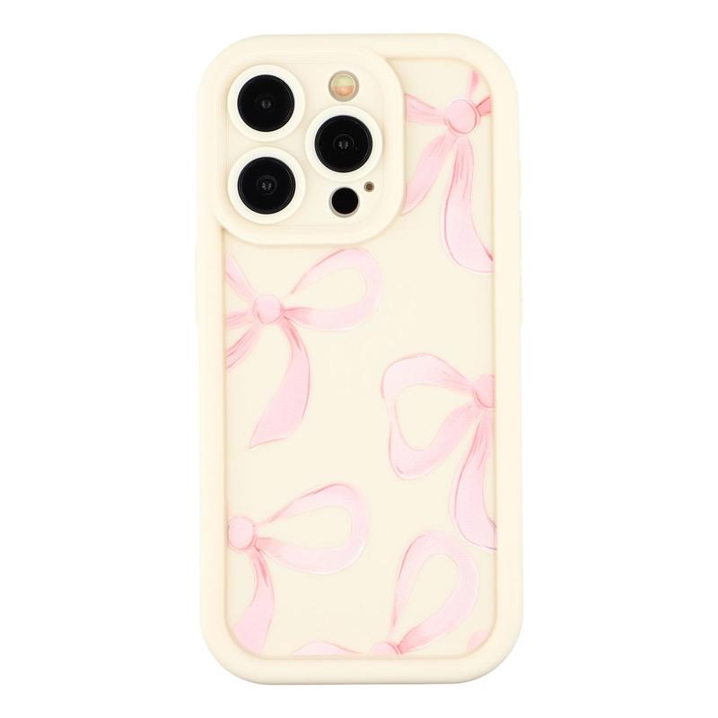 iPhone 15 Pro Stilfuldt stødsikkert TPU cover med forhøjede kanter - hvid / stor sløjfe