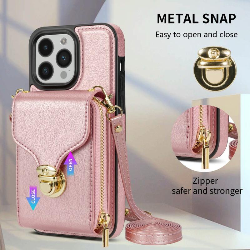Alt-i-et beskyttende TPU cover med tegnebog og rem til iPhone 15 Pro Max