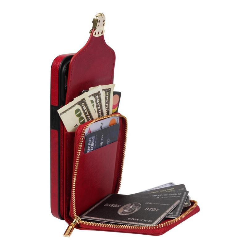 iPhone 15 Pro Alt-i-et cover med pung og rem - rød