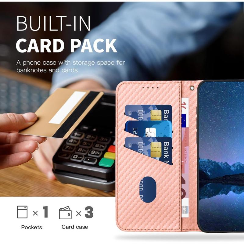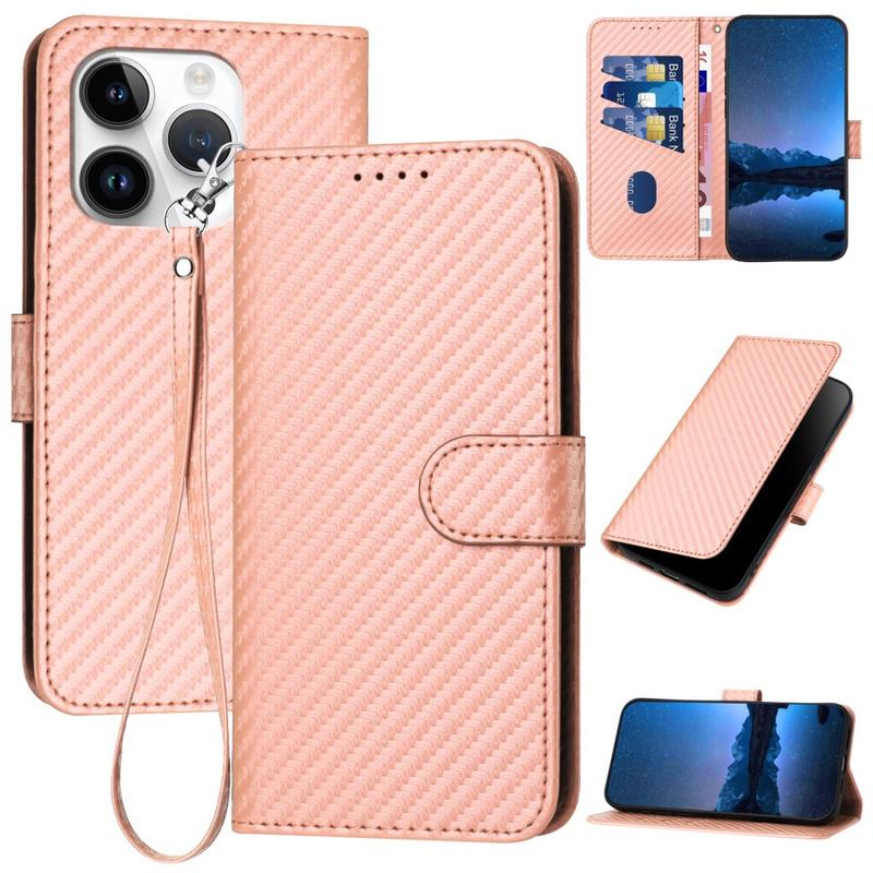 iPhone 15 Pro Max Premium Wallet-etui med rem - kulfiberstruktur