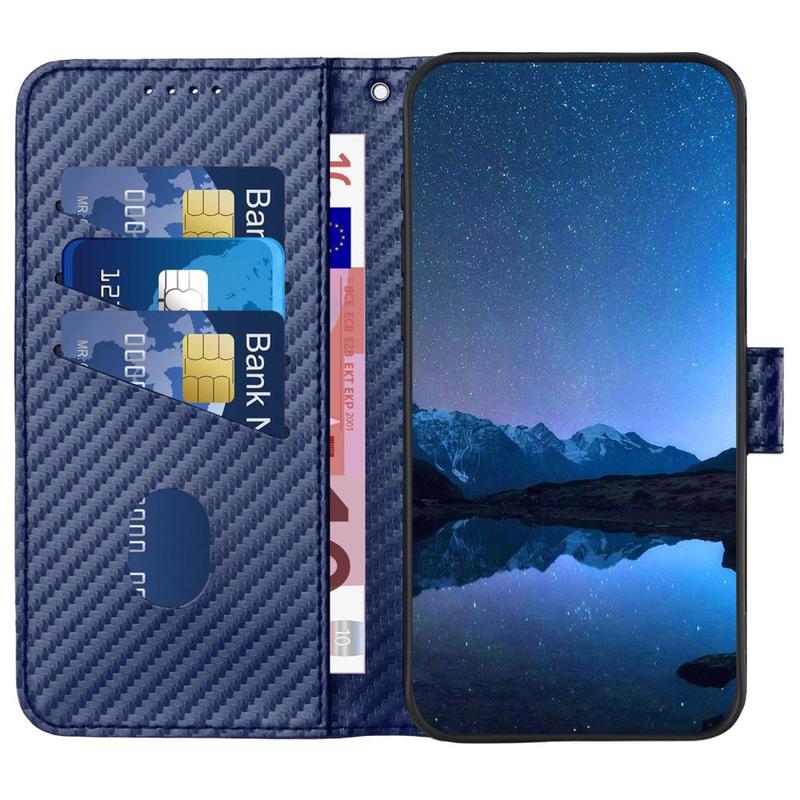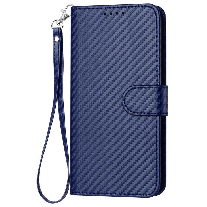 iPhone 16 Premium Wallet-etui med rem - kulfiberstruktur - Kulstofblå