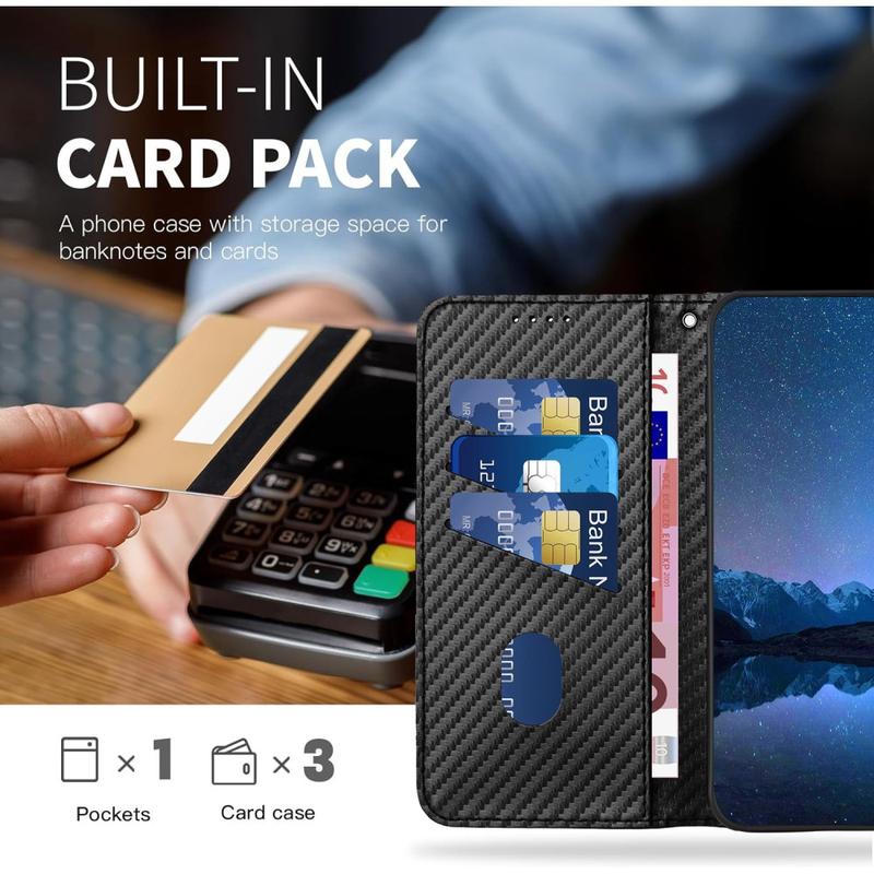 - Premium kulfiberstruktur - Lavet af slidstærkt polyuretan (PU) med et raffineret kulfibermønster og en blød TPU-inderskal for pålidelig stødabsorbering og ridsefasthed.
