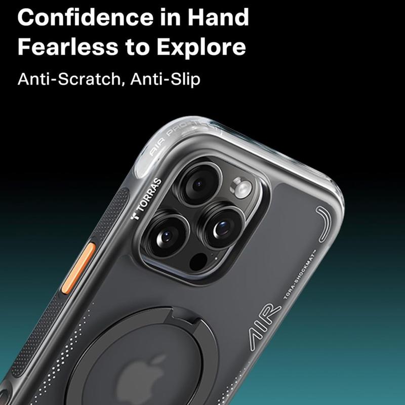 Torras Ostand Q3 Air MagSafe Case til iPhone 15 Pro kombinerer moderne æstetik med avanceret beskyttelse. Det er fremstillet af TPU- og PC-materialer af høj kvalitet og giver en slank, stilfuld profil, samtidig med at det giver et sikkert og behageligt greb.