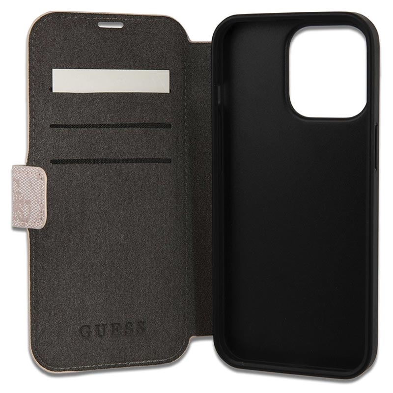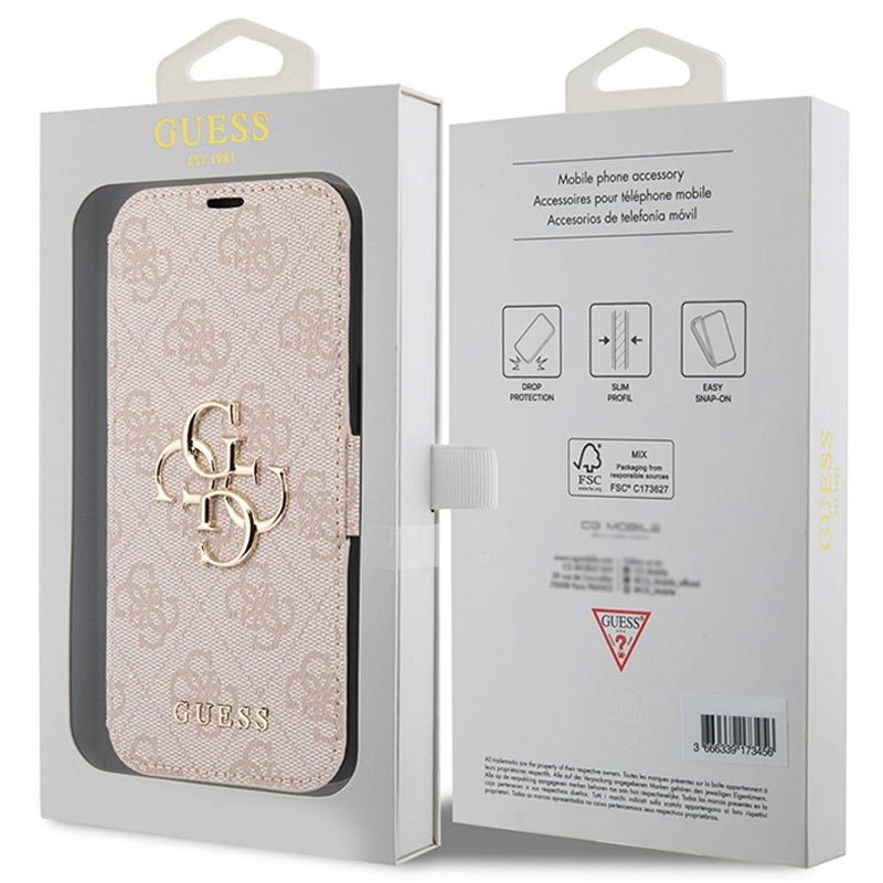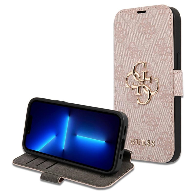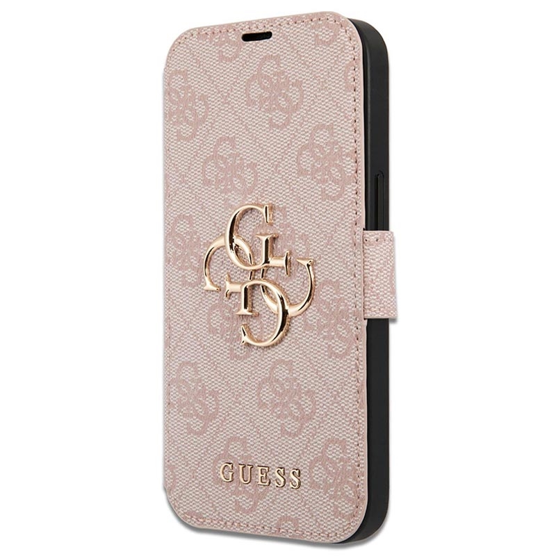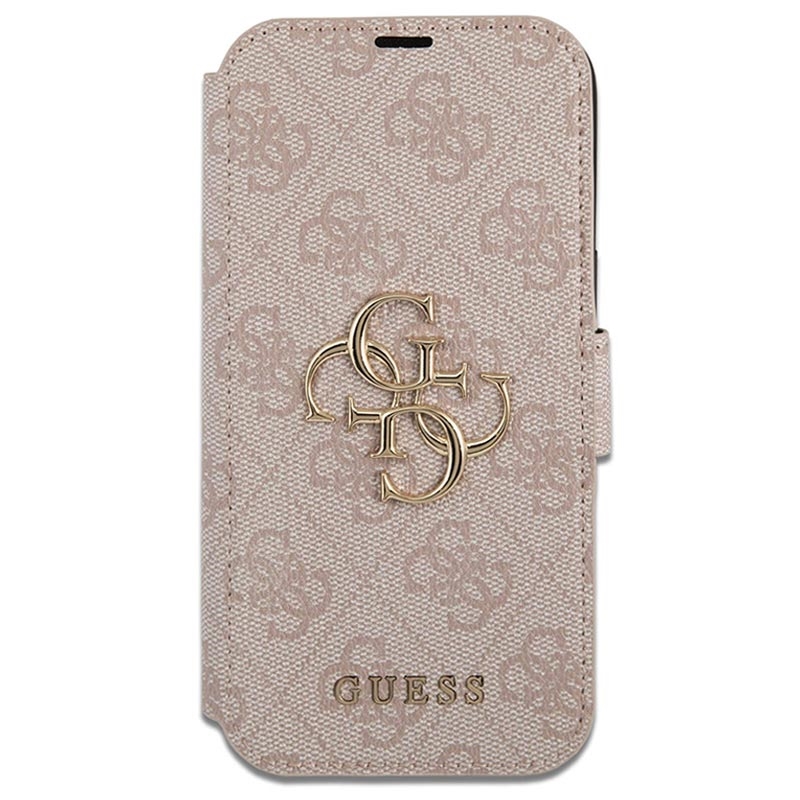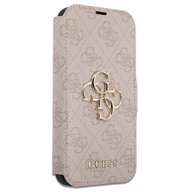 iPhone 15 Pro Guess 4G Metal Logo Flip Cover - Pink