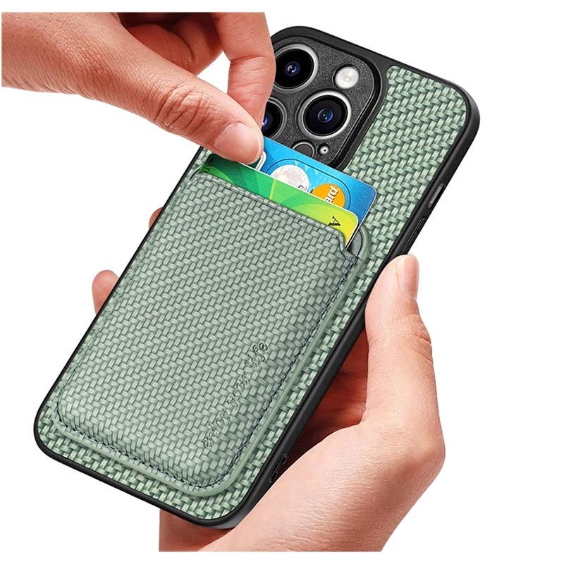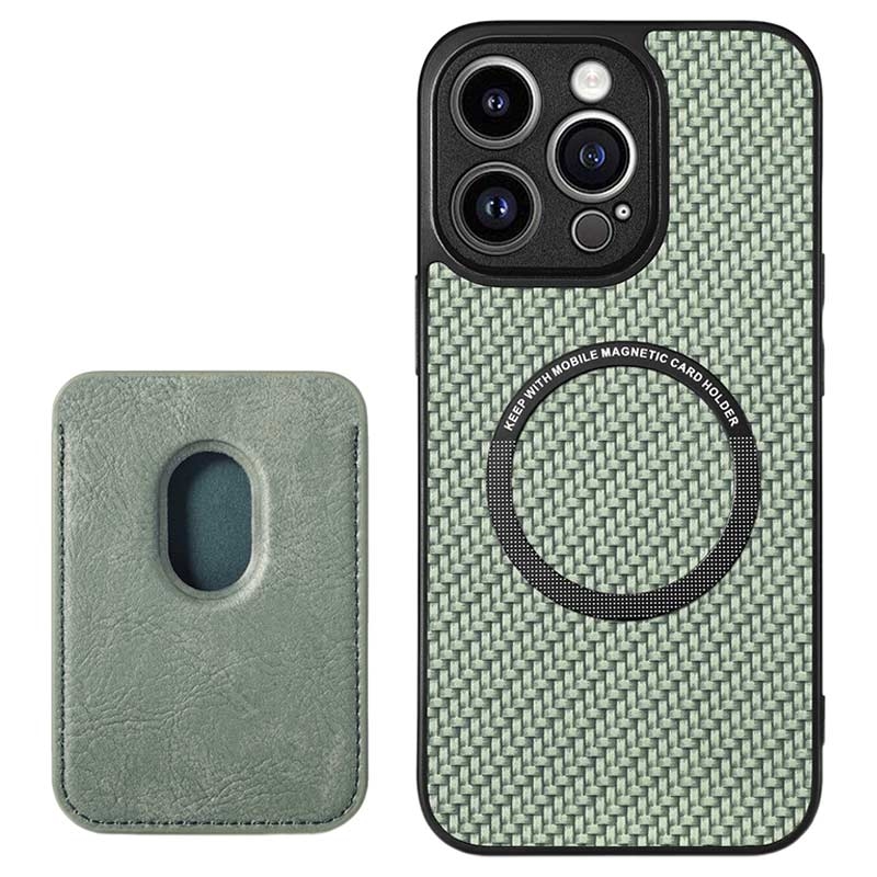 iPhone 15 Pro Magnetisk Cover med Kortholder - Karbonfiber - Grøn
