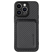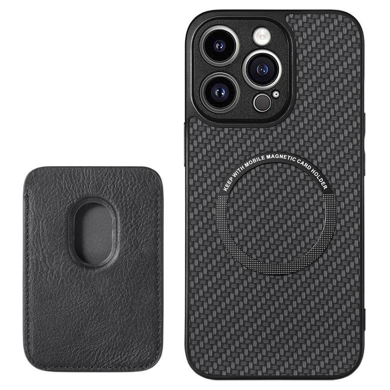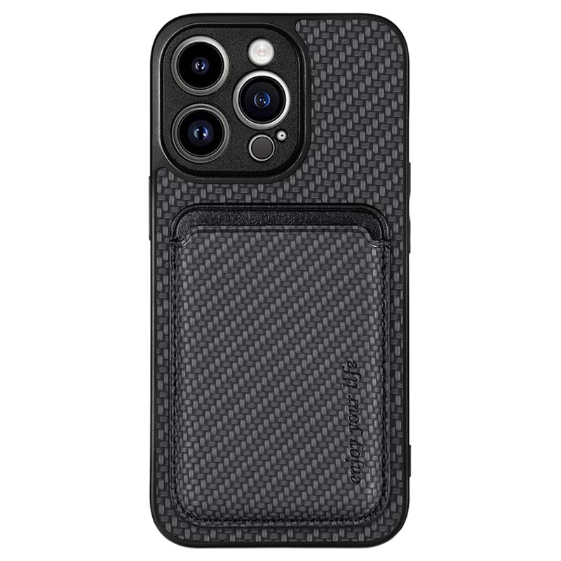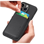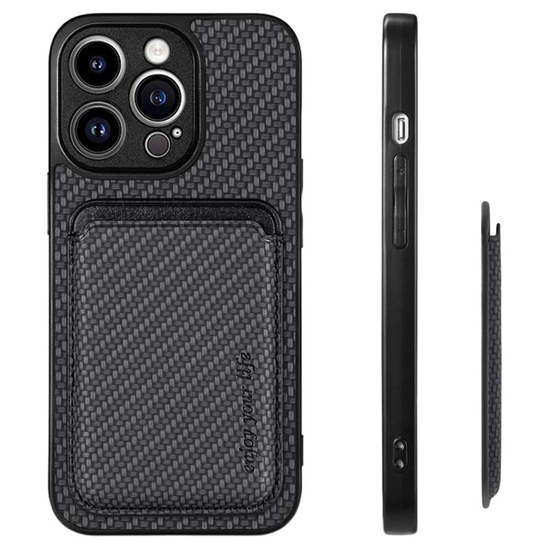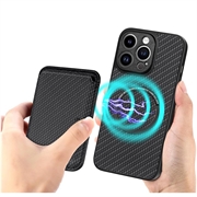 iPhone 15 Pro Magnetisk Cover med Kortholder - Karbonfiber - Sort