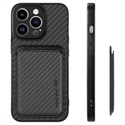 Magnetisk Cover med Kortholder till iPhone 15 Pro - Karbonfiber
