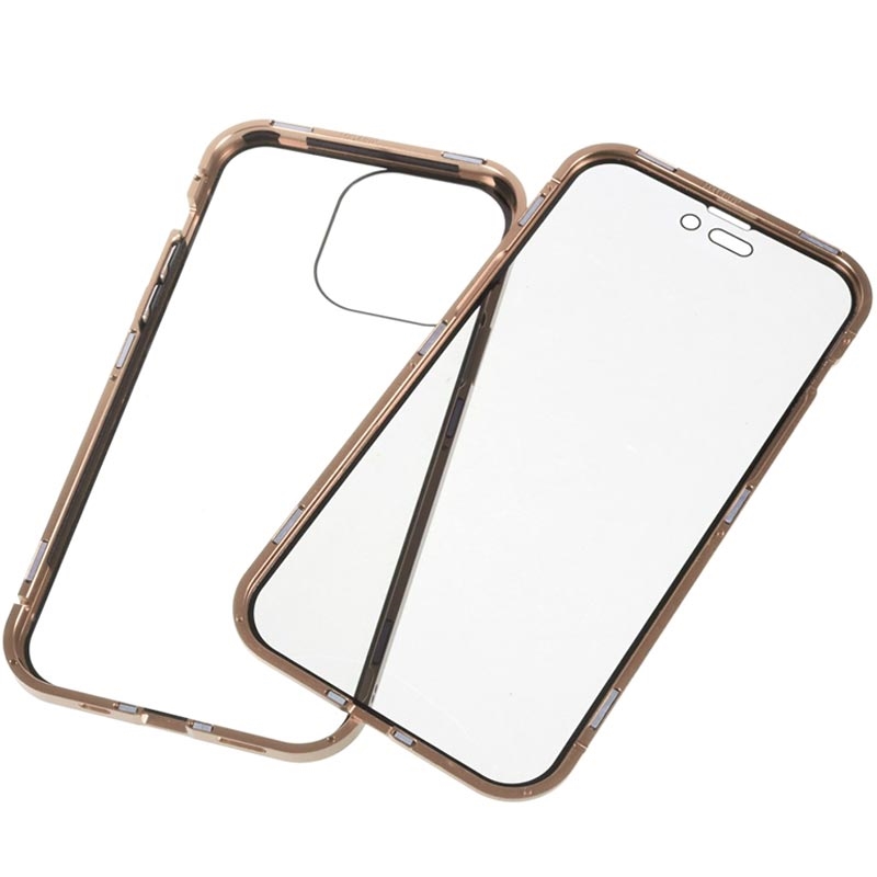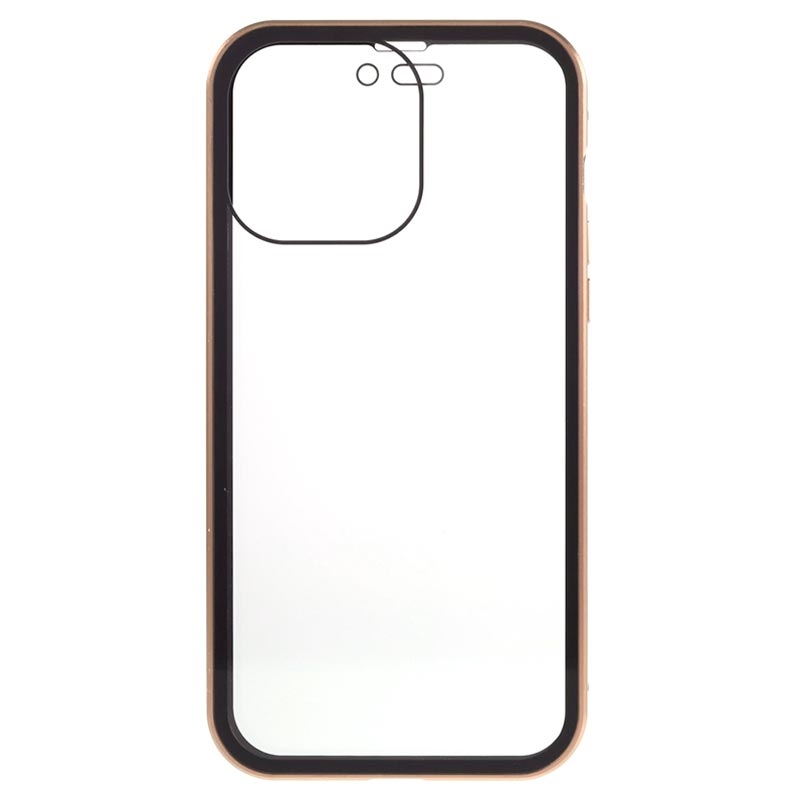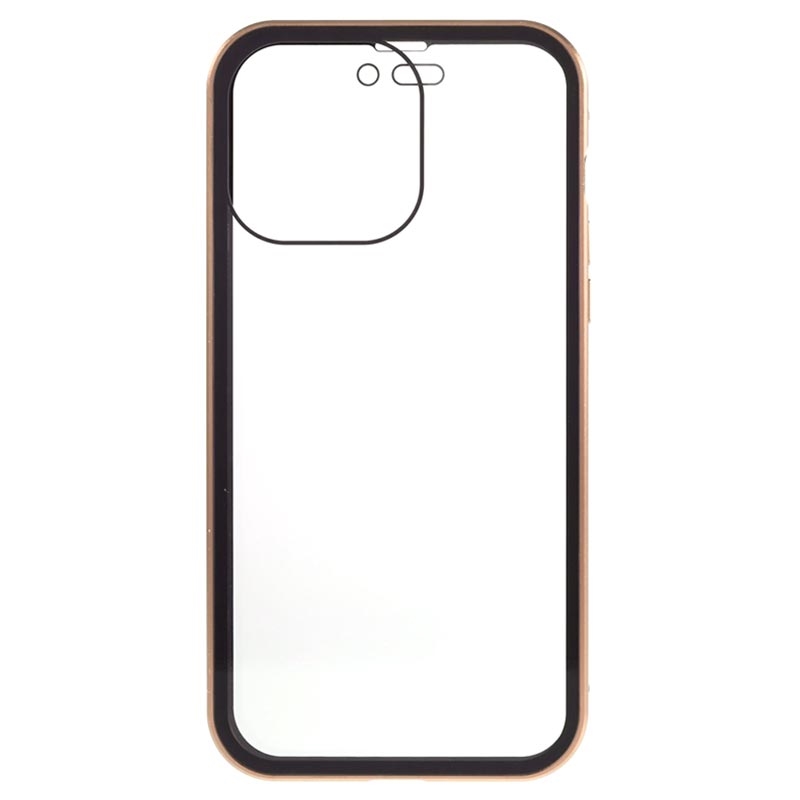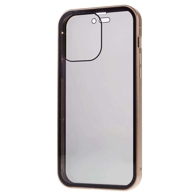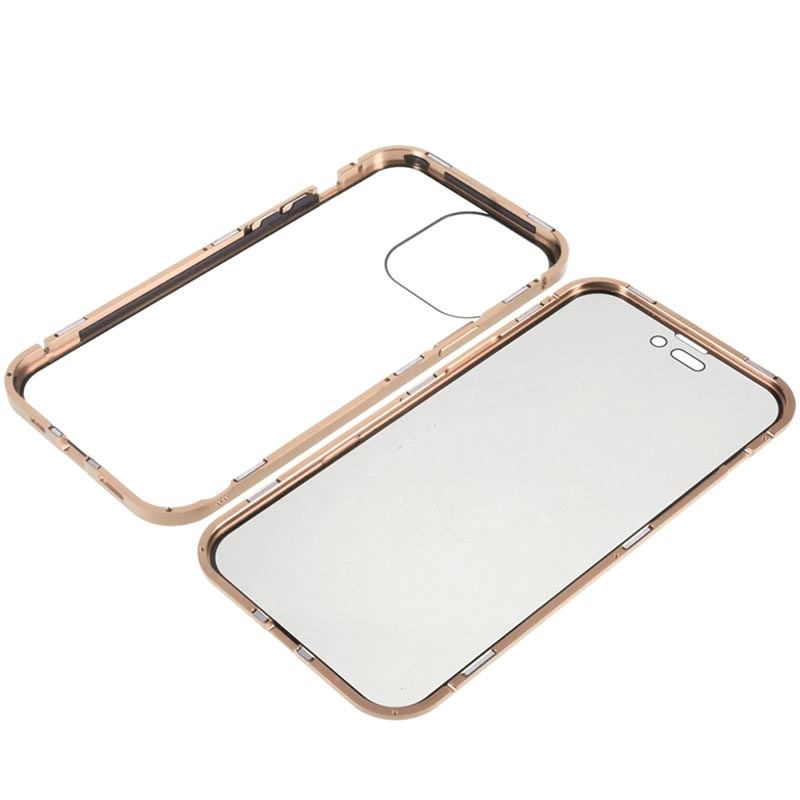 iPhone 15 Pro Magnetisk Cover med Privatlivssikret Hærdet Glas - Guld