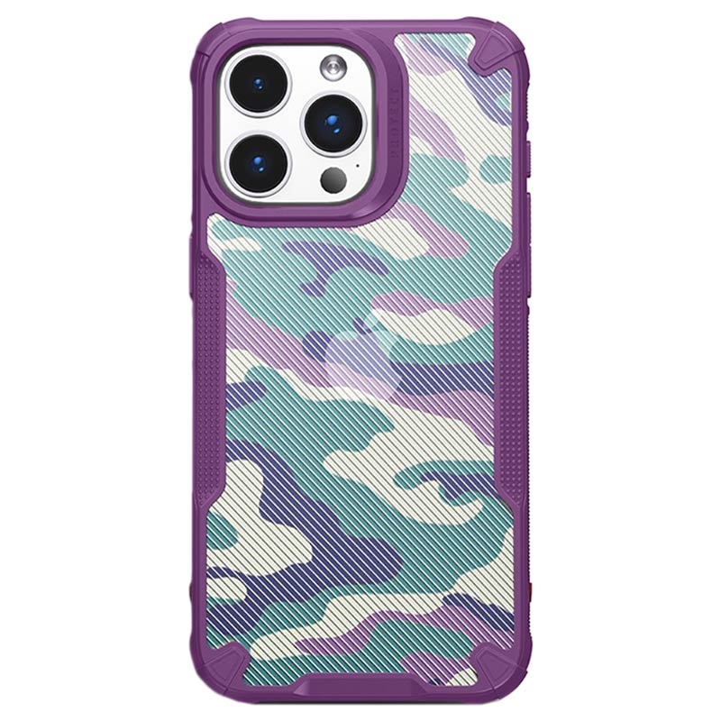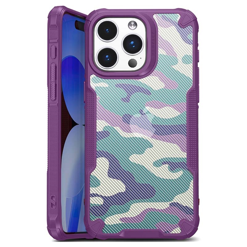 iPhone 15 Pro Max Anti-Shock Hybrid Cover - Camouflage - Lilla