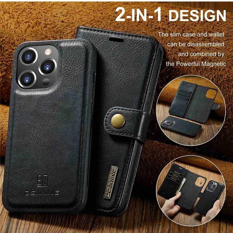 DG.Ming 2-i-1 Læderpung med Aftageligt Cover til iPhone 15 Pro Max