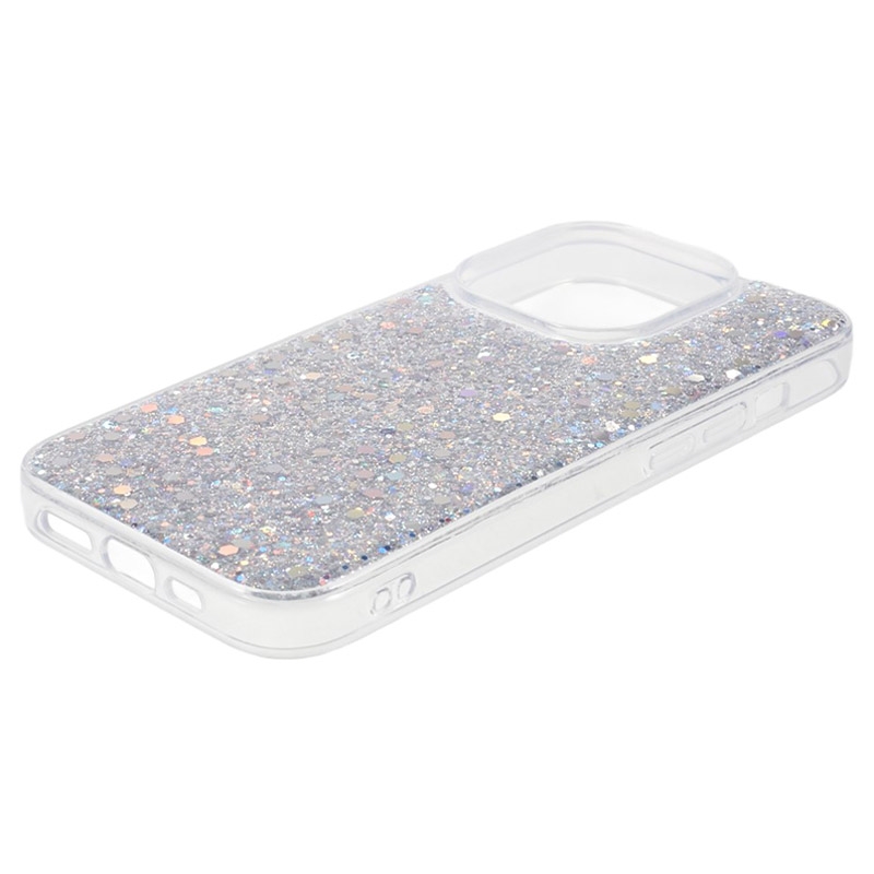 iPhone 15 Pro Max Glitter Flakes TPU Cover - Sølv