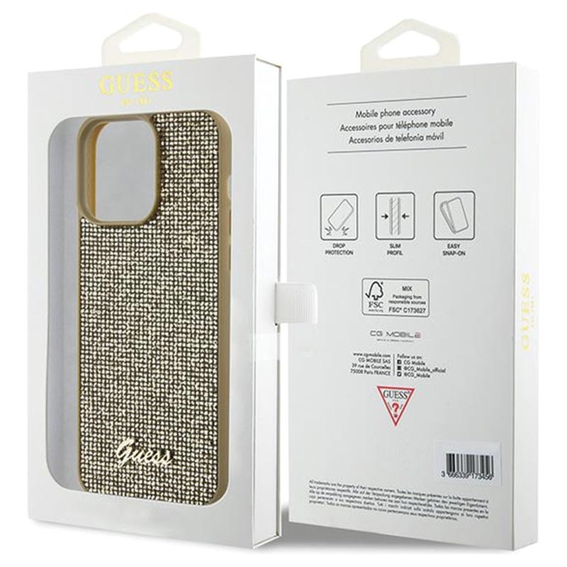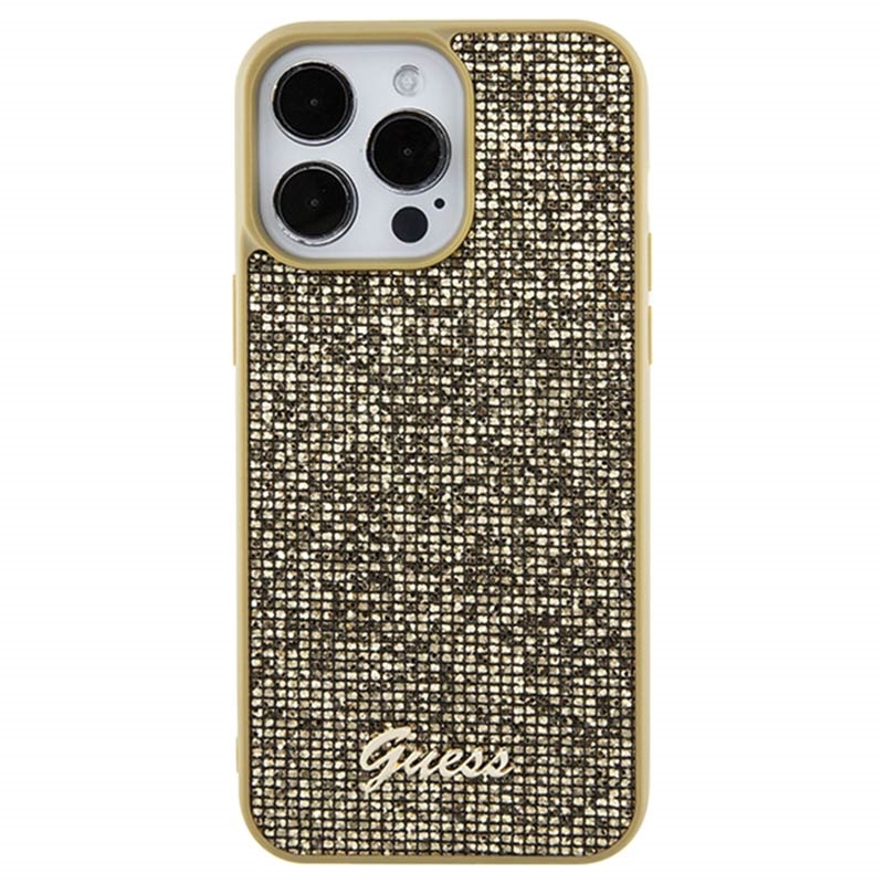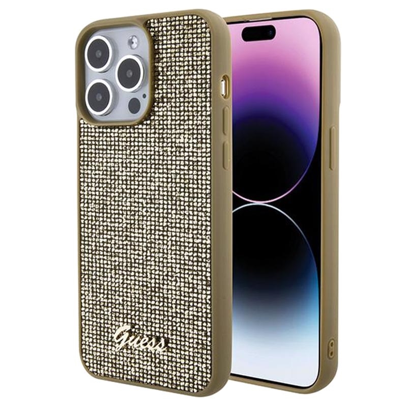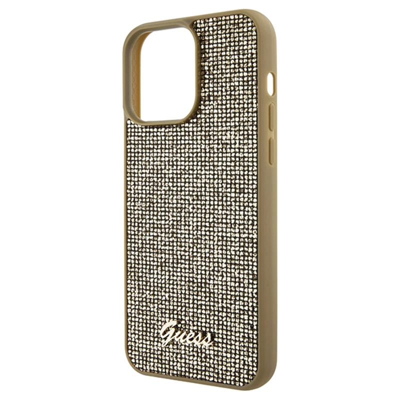 iPhone 15 Pro Max Guess Disco Metal Script Logo Cover - Guld