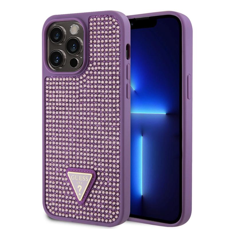 iPhone 15 Pro Max Guess Rhinestones Triangle Metal Logo Cover - Lilla