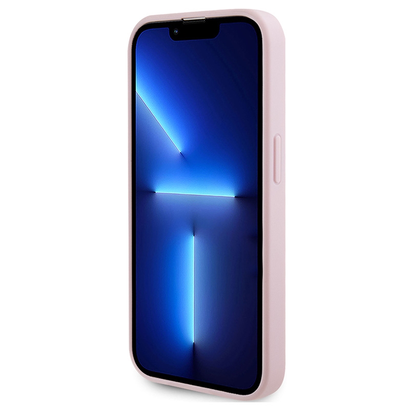 iPhone 15 Pro Max Guess 4G Rhinestone Metal Logo Flydende silikoneetui - Pink
