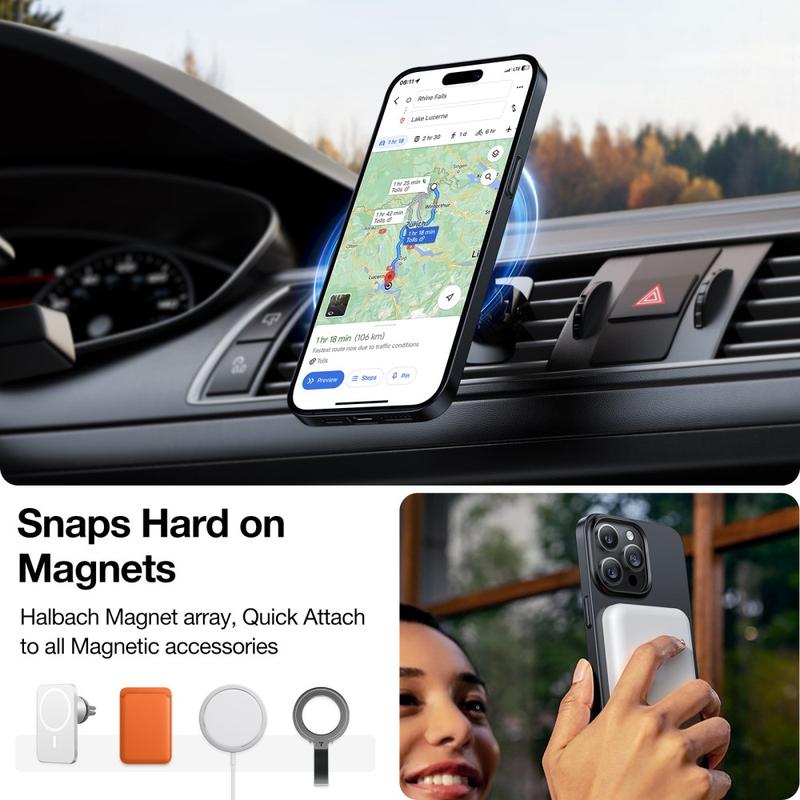- Magnetisk kerne i MagSafe-klasse - integreret ring giver et bundsolidt greb om opladere, tegnebøger og bilholdere, selv på ujævne veje.