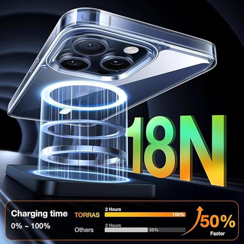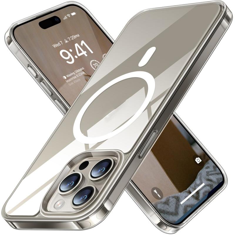 Torras MagSafe-kompatible gennemsigtige TPU-etui til iPhone 15 Pro Max kombinerer stil, beskyttelse og funktionalitet, hvilket gør det til det perfekte valg for brugere, der ønsker et slankt, holdbart etui, der fremhæver telefonens design og samtidig tilbyder MagSafe-komfort.