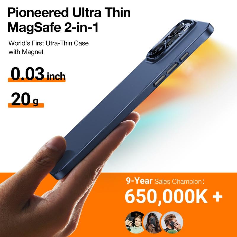 Skub din iPhone 15 Pro ind i et etui, der føles næsten usynligt, men beskytter som en fæstning. OriginFit-Mag er fremstillet af hårdfør polykarbonat og udstyret med Torras' højstyrke-magnetring, der kan låses fast til ethvert MagSafe-tilbehør og samtidig beskytte hver eneste millimeter glas og aluminium mod daglige stød.