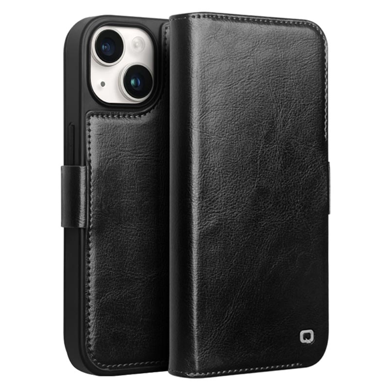 Beskyt din iPhone 15 i en elegant og moderne Qialino classic pung læder taske. Opbevar dine kreditkort, kontanter sammen med din mobil, takket være de integrerede lommer.