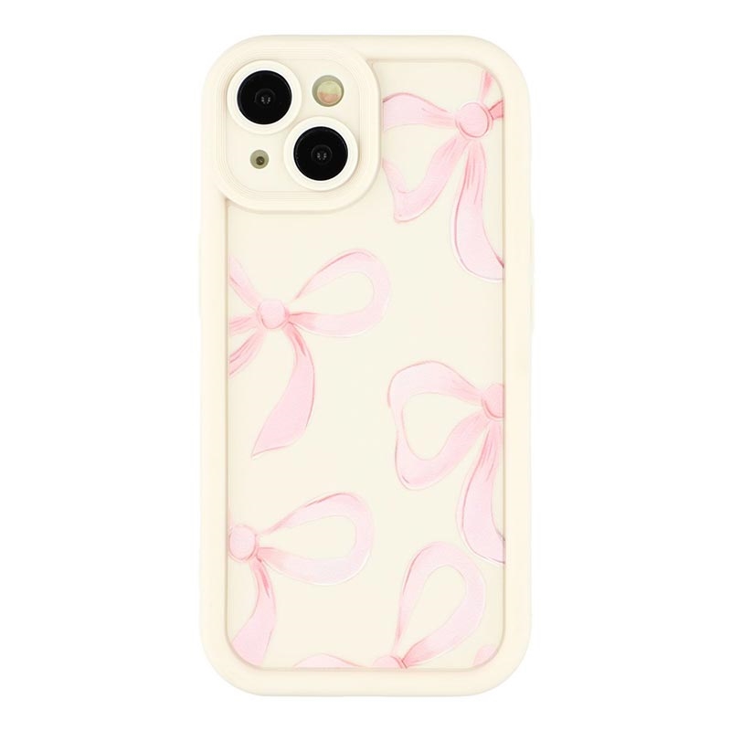 iPhone 15 Stilfuldt stødsikkert TPU cover med forhøjede kanter - hvid / stor sløjfe