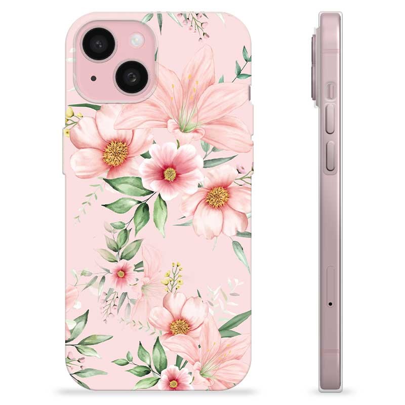 iPhone 15 TPU Cover - Vandfarveblomster