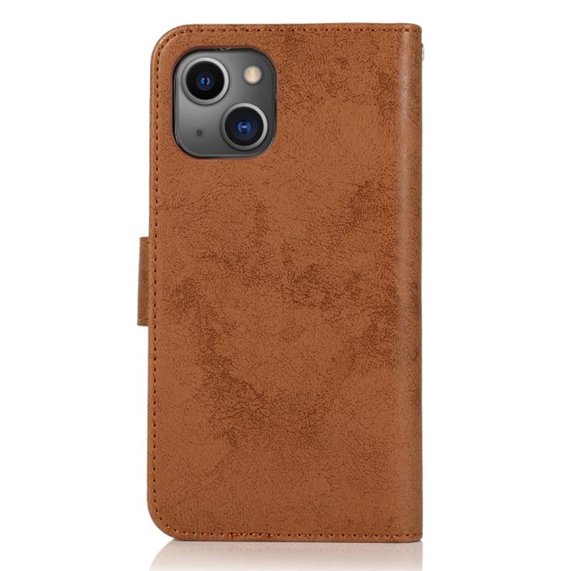 iPhone 13 Vintage 2-i-1-pungetui med aftageligt låg - brun