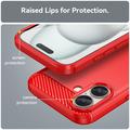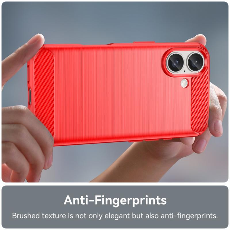 iPhone 16 Børstet TPU Cover - Karbonfiber - Rød