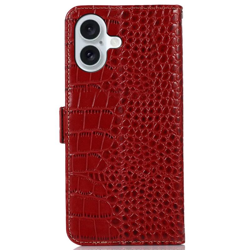 iPhone 16 Crocodile Series Læderpung med RFID - Rød