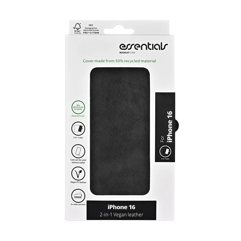 iPhone 16 Essentials aftageligt 2-i-1 pungetui - sort