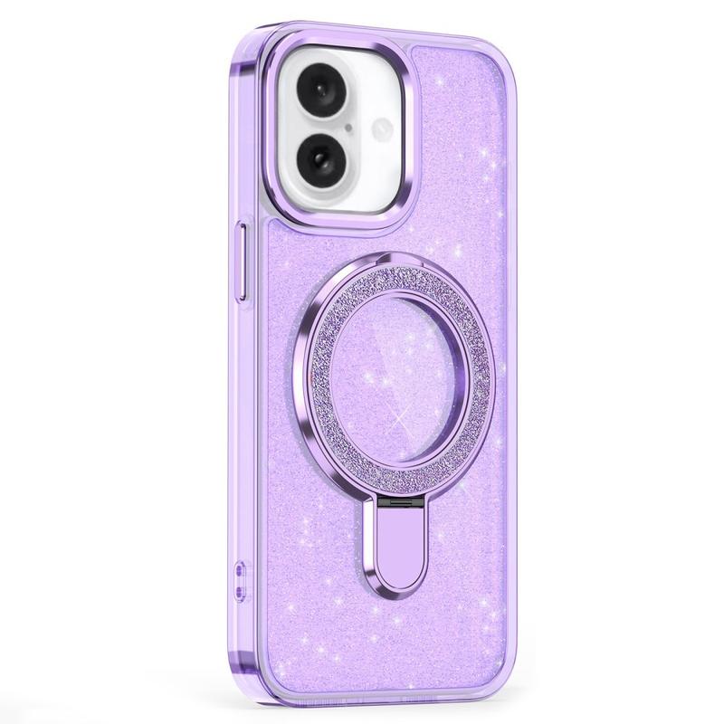 iPhone 16 Glitter Hybrid cover med kickstand - MagSafe-kompatibel - Lilla