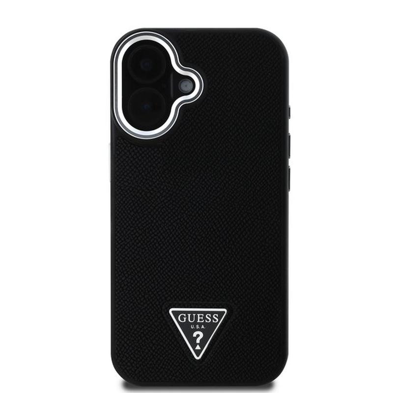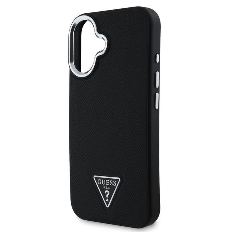 iPhone 16 Guess Grained Triangle Logo Cover - MagSafe-kompatibel - Sort